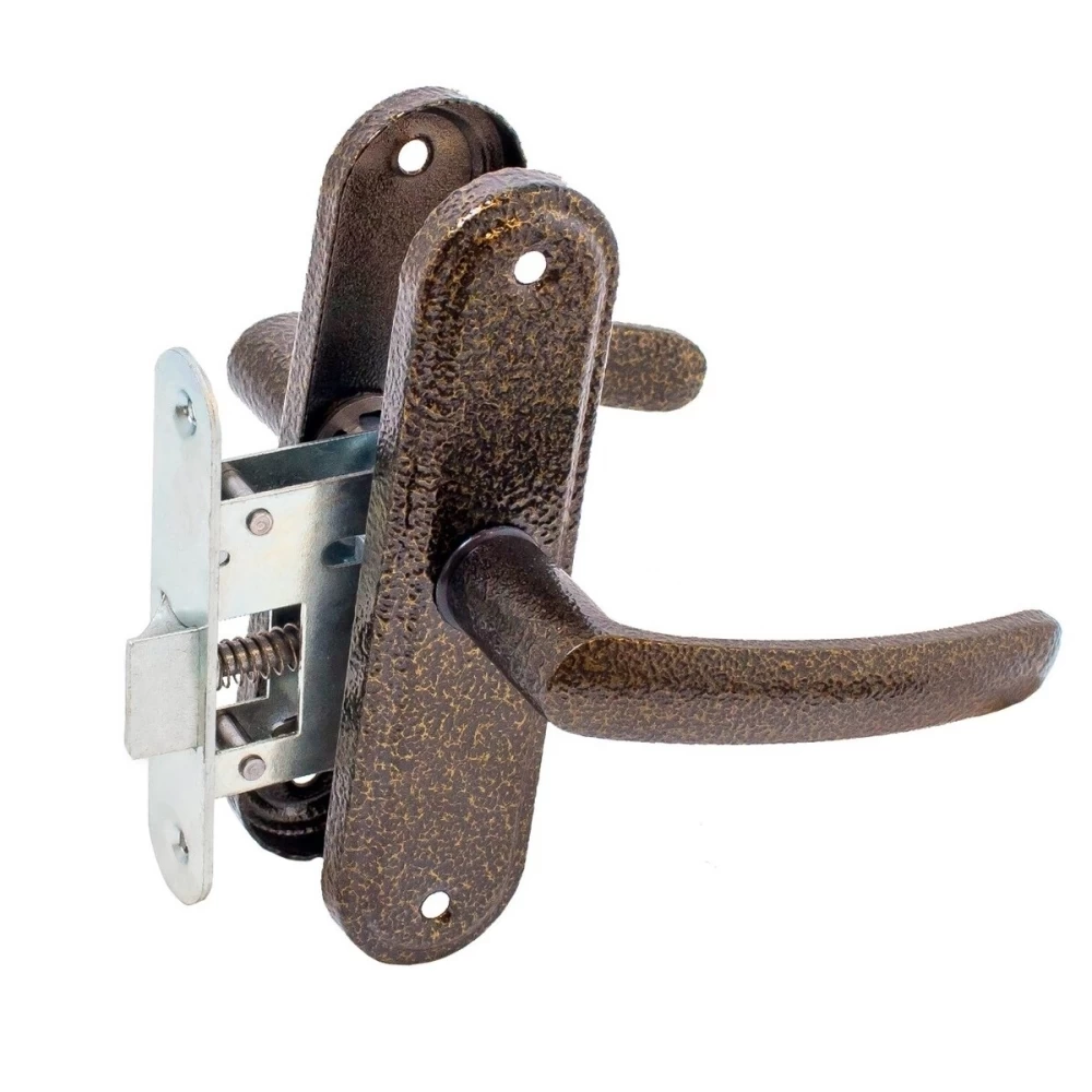 Защелка врезная с ручками. Предназначена для установки в деревянные двери толщиной до 45мм, правого и левого открывания. Универсальная защелка. Стальной корпус, покрыт гальваническим покрытием. Удаление ключевого отверстия 45мм. Материал ручек алюминиевый сплав. Комплектация: защелка, ручки, ответная планка, шурупы.
