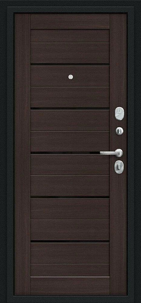 Надежная входная Браво Техно Kale Букле черное/Wenge Veralinga премиум класса по цене 34 510 руб. Большая толщина стали защитит от проникновения в ваш дом, квартиру или коттедж. Используется очень качественная фурнитура: замки, цилиндры, ручки, защелки. Покрытие и отделка двери изготовлено под внимательным контролем производителя. Дверь имеет долгий срок службы и гарантию.