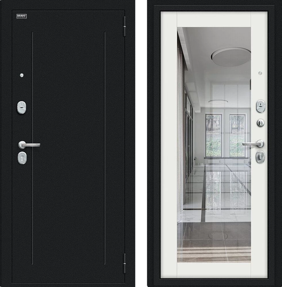 Надежная входная Дверь Браво Флэш Букле черное/Off-white премиум класса по цене 34 160 руб. Большая толщина стали защитит от проникновения в ваш дом, квартиру или коттедж. Используется очень качественная фурнитура: замки, цилиндры, ручки, защелки. Покрытие и отделка двери изготовлено под внимательным контролем производителя. Дверь имеет долгий срок службы и гарантию.