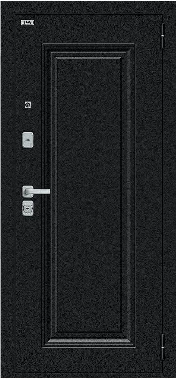Надежная входная Дверь Браво Флэш МФ/BChrome Букле черное/Bianco Melinga премиум класса по цене 36 910 руб. Большая толщина стали защитит от проникновения в ваш дом, квартиру или коттедж. Используется очень качественная фурнитура: замки, цилиндры, ручки, защелки. Покрытие и отделка двери изготовлено под внимательным контролем производителя. Дверь имеет долгий срок службы и гарантию.