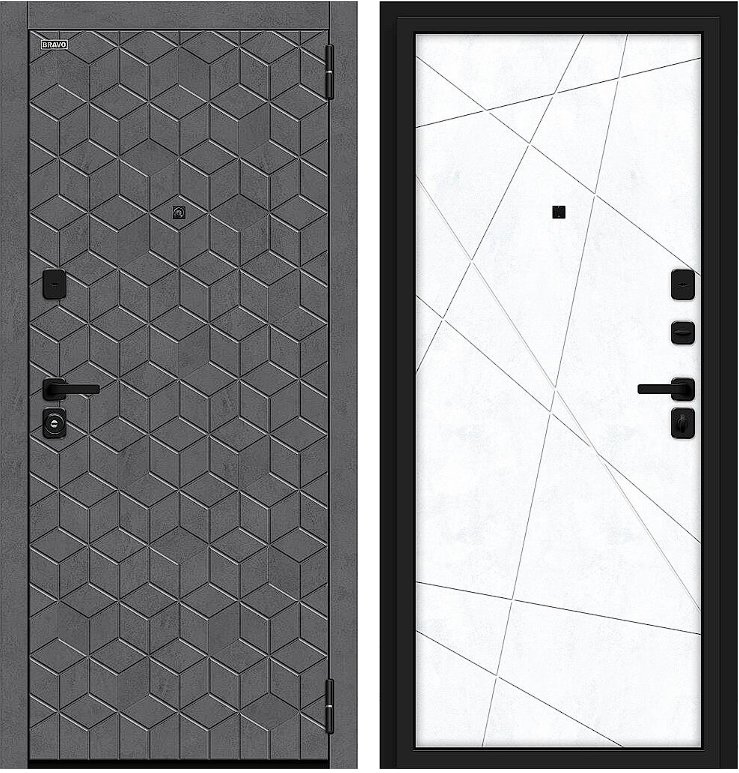 Надежная входная Дверь Браво Кьюб/SBlack Slate Art/Snow Art премиум класса по цене 39 610 руб. Большая толщина стали защитит от проникновения в ваш дом, квартиру или коттедж. Используется очень качественная фурнитура: замки, цилиндры, ручки, защелки. Покрытие и отделка двери изготовлено под внимательным контролем производителя. Дверь имеет долгий срок службы и гарантию.