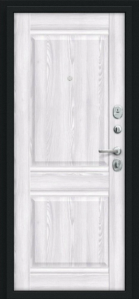 Надежная входная Дверь Браво Некст Kale Букле черное/Riviera Ice премиум класса по цене 35 930 руб. Большая толщина стали защитит от проникновения в ваш дом, квартиру или коттедж. Используется очень качественная фурнитура: замки, цилиндры, ручки, защелки. Покрытие и отделка двери изготовлено под внимательным контролем производителя. Дверь имеет долгий срок службы и гарантию.
