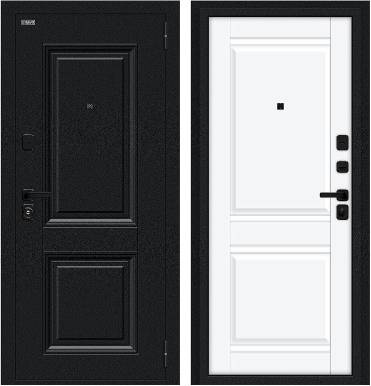 Надежная входная Дверь Браво Некст МФ/SBlack Букле черное/White Silk премиум класса по цене 36 410 руб. Большая толщина стали защитит от проникновения в ваш дом, квартиру или коттедж. Используется очень качественная фурнитура: замки, цилиндры, ручки, защелки. Покрытие и отделка двери изготовлено под внимательным контролем производителя. Дверь имеет долгий срок службы и гарантию.