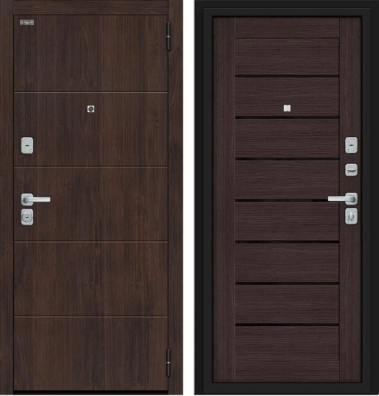 Надежная входная Дверь Браво Прайм/BChrome Almon/Wenge Melinga премиум класса по цене 40 110 руб. Большая толщина стали защитит от проникновения в ваш дом, квартиру или коттедж. Используется очень качественная фурнитура: замки, цилиндры, ручки, защелки. Покрытие и отделка двери изготовлено под внимательным контролем производителя. Дверь имеет долгий срок службы и гарантию.