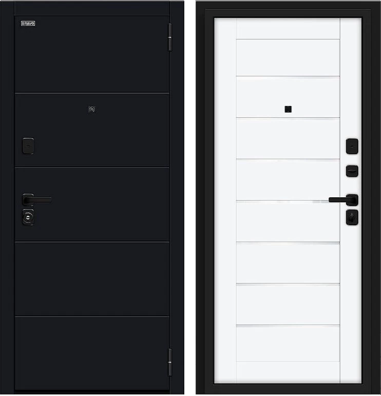 Надежная входная Дверь Браво Прайм/SBlack-Black Shell/White Silk премиум класса по цене 40 560 руб. Большая толщина стали защитит от проникновения в ваш дом, квартиру или коттедж. Используется очень качественная фурнитура: замки, цилиндры, ручки, защелки. Покрытие и отделка двери изготовлено под внимательным контролем производителя. Дверь имеет долгий срок службы и гарантию.