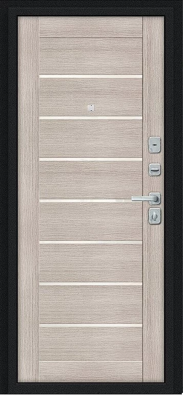Надежная входная Дверь Браво Техно/BChrome Букле черное/Cappuccino Melinga премиум класса по цене 33 360 руб. Большая толщина стали защитит от проникновения в ваш дом, квартиру или коттедж. Используется очень качественная фурнитура: замки, цилиндры, ручки, защелки. Покрытие и отделка двери изготовлено под внимательным контролем производителя. Дверь имеет долгий срок службы и гарантию.
