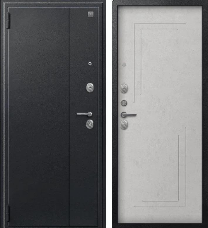 Надежная входная Дверь A-06 черный сатин - бетон светлый премиум класса по цене 30 090 руб. Большая толщина стали защитит от проникновения в ваш дом, квартиру или коттедж. Используется очень качественная фурнитура: замки, цилиндры, ручки, защелки. Покрытие и отделка двери изготовлено под внимательным контролем производителя. Дверь имеет долгий срок службы и гарантию.