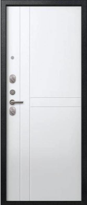 Надежная входная Дверь V-06 Черный муар - Белый премиум класса по цене 39 110 руб. Большая толщина стали защитит от проникновения в ваш дом, квартиру или коттедж. Используется очень качественная фурнитура: замки, цилиндры, ручки, защелки. Покрытие и отделка двери изготовлено под внимательным контролем производителя. Дверь имеет долгий срок службы и гарантию.